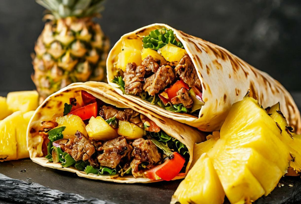 (Ананас, пекинская капуста, мясо куриное, огурцы, помидоры, соус авторский.)